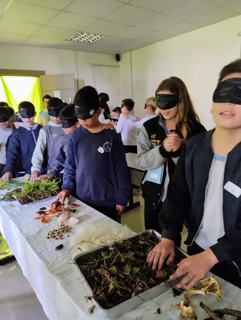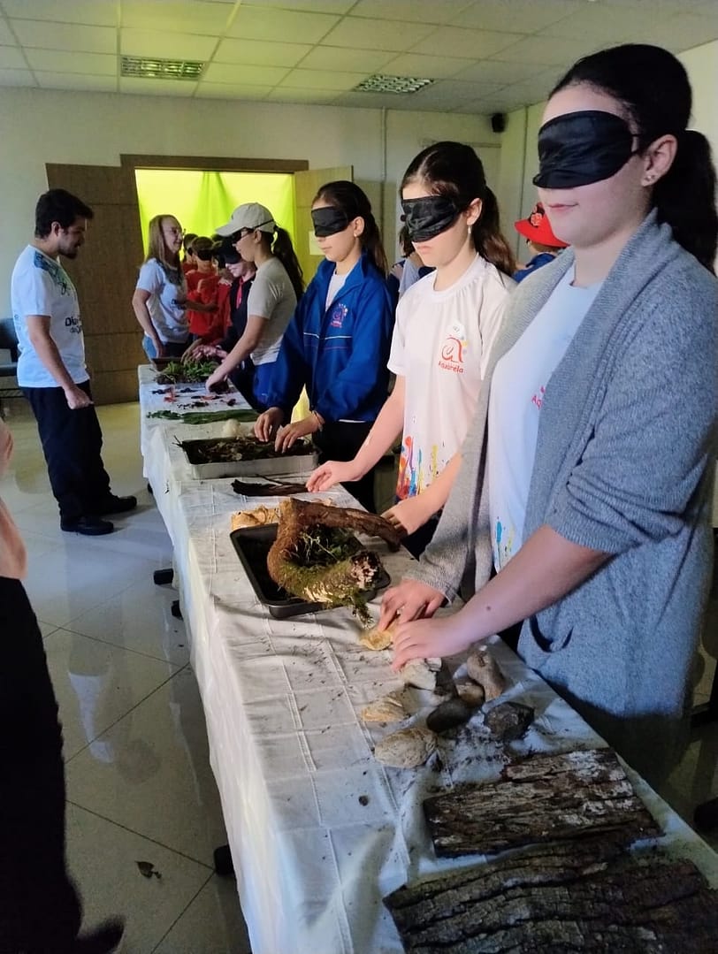 O Parque Estadual Fritz Plaumann teve sua participação ao realizar com os alunos uma trilha sensorial. Diversos materiais foram coletados no parque (com o mínimo de impacto ambiental), como galhos com musgo, serrapilheira, cogumelos orelha-de-pau, terra, algodão e cascas do fruto de paineira, pedras, cascas de pente-de-macaco, entre outros materiais. Para formar a trilha, foram dispostos em uma longa mesa, numa sala escura. A atividade consistiu inicialmente numa fala introdutória sobre o parque, seu bioma (mata atlântica) e fitofisionomia (floresta estacional decidual). Após, as crianças, vendadas, percorreram a mesa tocando os objetos, sentindo suas texturas e cheiros. A trilha foi enriquecida com sons ambientes de floresta e aromas de plantas.