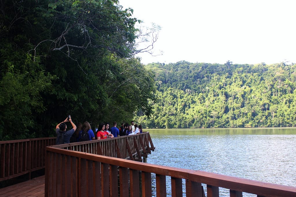 Os alunos sempre assistem o vídeo institucional da Unidade de Conservação, contendo os principais atrativos abertos à visitação. Seguem para a Sala de Exposições do Parque, onde através de maquete e painéis multitemáticos, conheceram as principais características e particularidades da Unidade, histórico de criação e ocupação da área, bioma e recursos hídricos protegidos, alterações na paisagem decorrentes do empreendimento hidrelétrico, trabalhos desenvolvidos pela equipe co gestora e legado científico do entomólogo alemão Fritz Plaumann. Na sequência percorreram a trilha da Canafístula de maneira guiada e interpretativa. Na parte da tarde percorreram as Trilhas do Lajeado Cruzeiro, Trilha das Marrequinhas e Trilha do Mirante.
