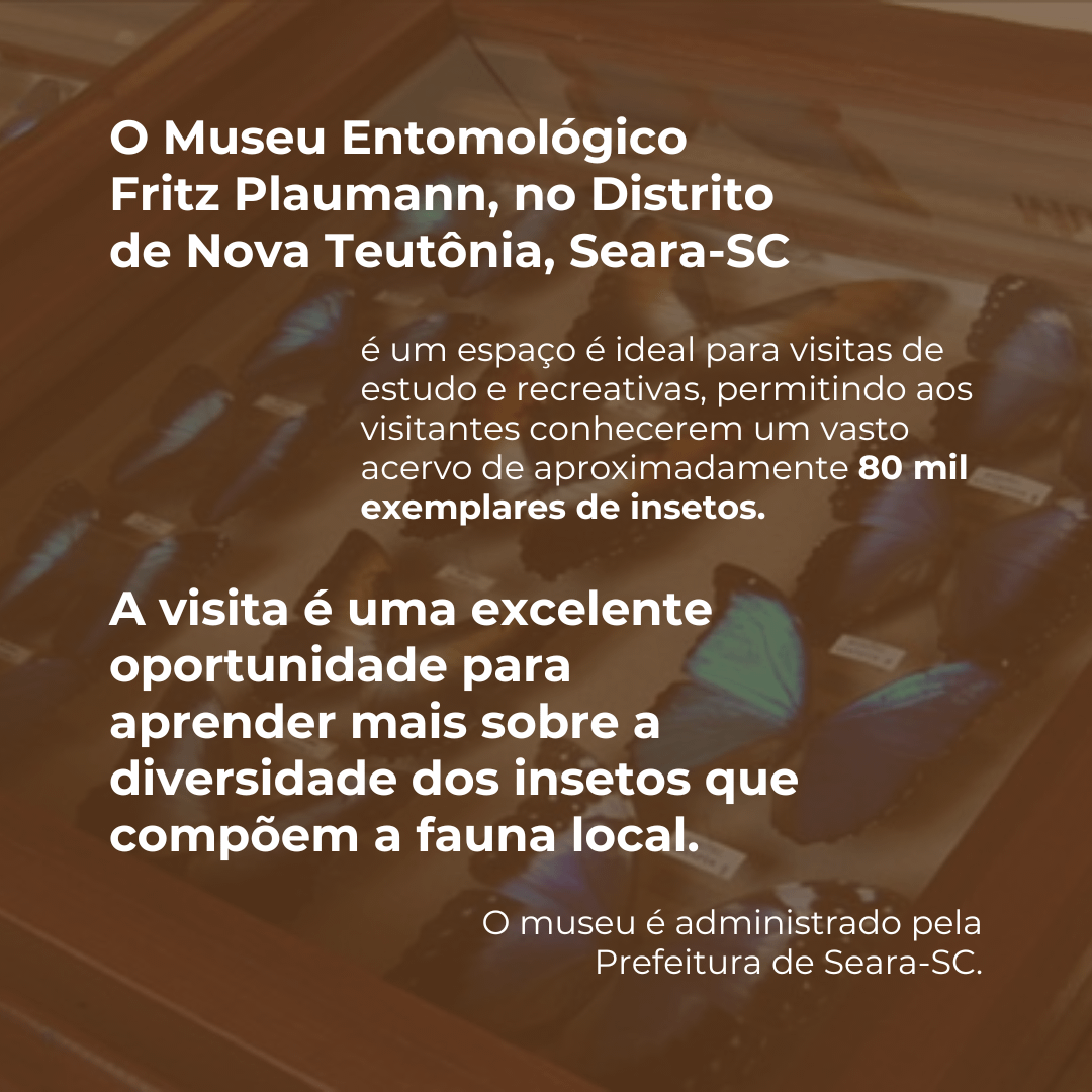 Já o Museu Fritz Plaumann, localizado no município vizinho de Seara (SC), tem como foco a história e o legado científico do renomado entomólogo Fritz Plaumann. O museu preserva seu acervo, com coleções de insetos e registros históricos que retratam o trabalho e as descobertas desse importante pesquisador.